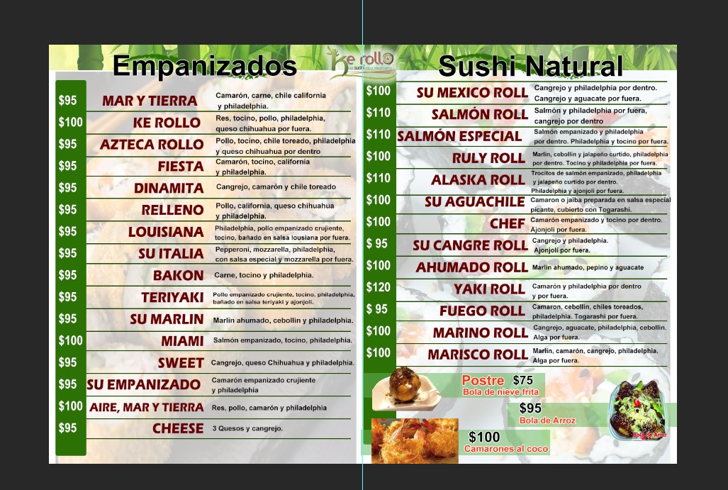 Welcome to Ke Rollo Sushi, a gem nestled in the heart of Juárez, where culinary artistry meets vibrant flavors. Their menu offers an impressive selection of sushi, each thoughtfully crafted to highlight freshness and quality. Start with the Bola de Arroz, a delightful rice ball featuring succulent shrimp, priced at MX$155.00.